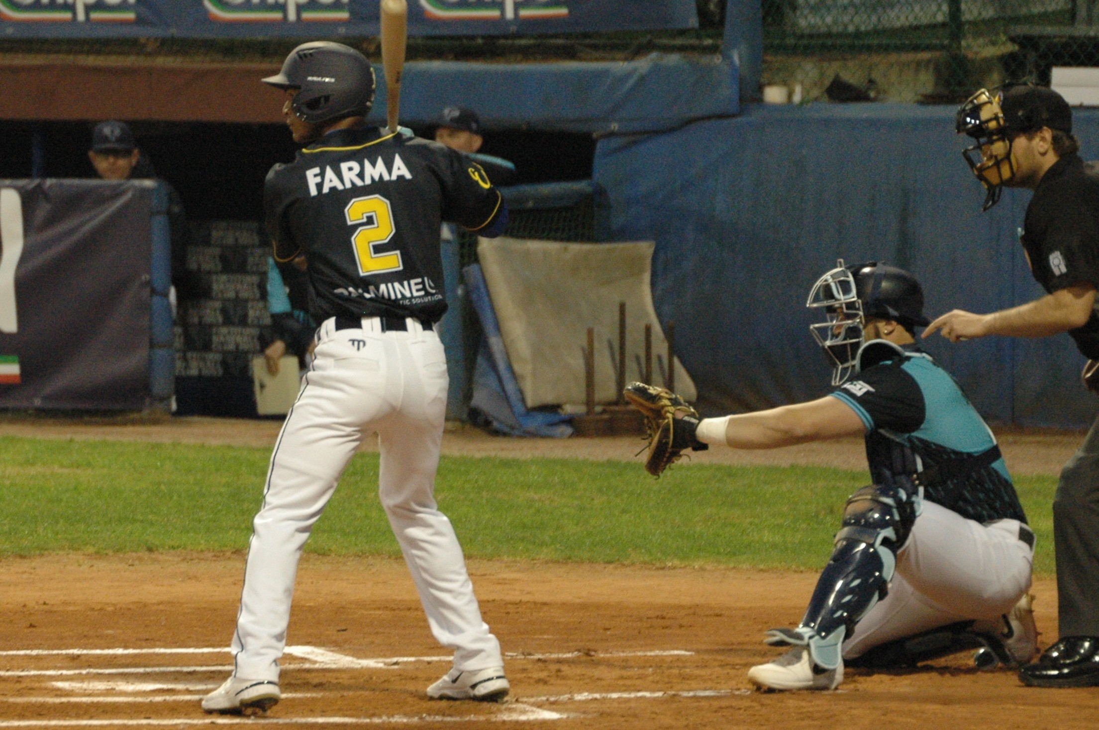 La Farma gioca un’altra splendida partita contro i vice campioni d’Italia del Parmaclima, in un derby combattuto e spettacolare, che ha tenuto incollati ai seggiolini dello stadio Cavalli i circa duecento spettatori, batte più valide dei suoi più quotati avversari (11-7), rimonta al quinto i tre punti di svantaggio accumulati nelle prime tre riprese, subisce due torti arbitrali, ammessi successivamente dalla stessa terna, va di nuovo in svantaggio e sfiora la seconda rimonta nelle riprese finali. Ottima la prova dei lanciatori Carrillo ed Herrera, ha un contributo straordinario dai primi quattro battitori del line-up che battono dieci delle undici valide totali, con il cubano Moreno sugli scudi a 4 su 5 con due punti battuti a casa, Capitan Covati e Sambucci ( con un doppio e un punto battuto a casa) a 2 su 3 e Manuel Piazza a 2 su 5 con un doppio. Fantastica presa al volo di Lorenzo Zoni che “salva” la settima ripresa.